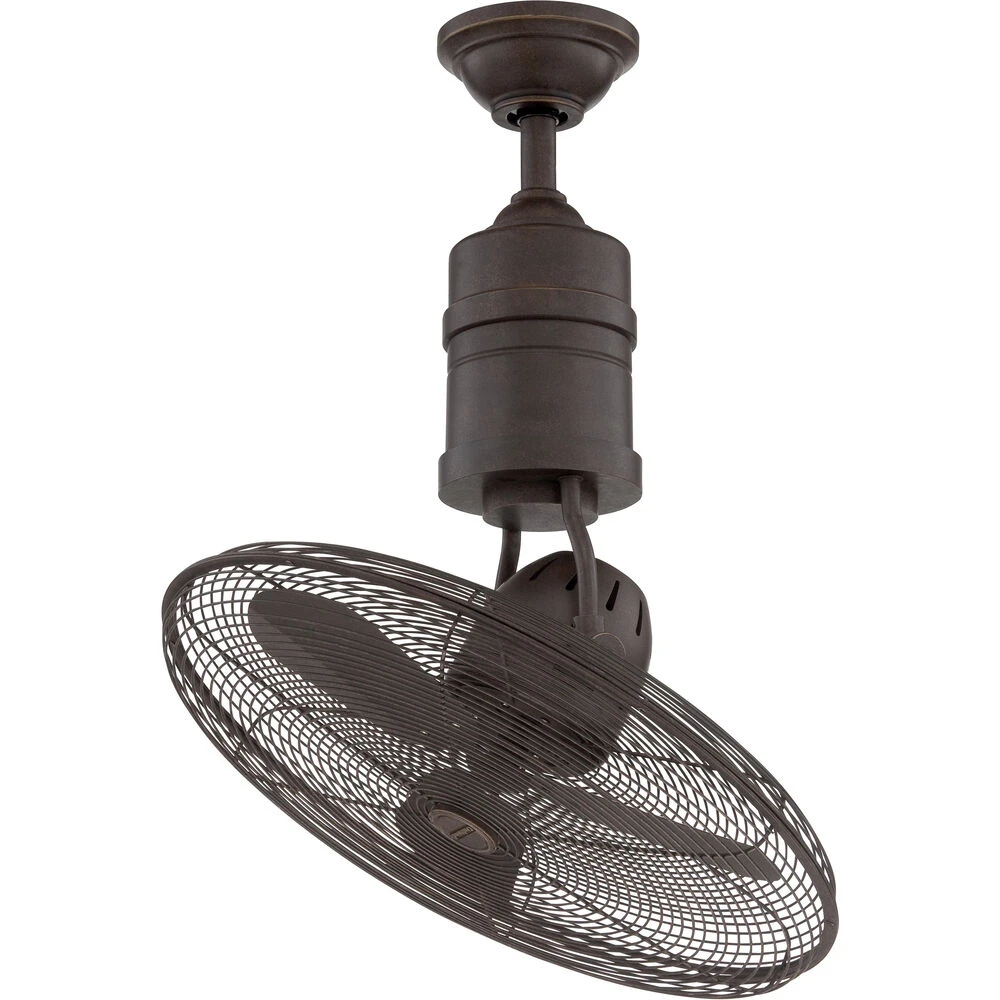 Introducing the ultimate industrial Retro-chic rotating cage fan, indoors or out. Ceiling-mounted with a 4″ downrod, the uber-cool Bellows III is equipped with a 90-degree tilt feature, 21″ blades, 360 degree rotation, and a powerful 3-speed reversible motor.
