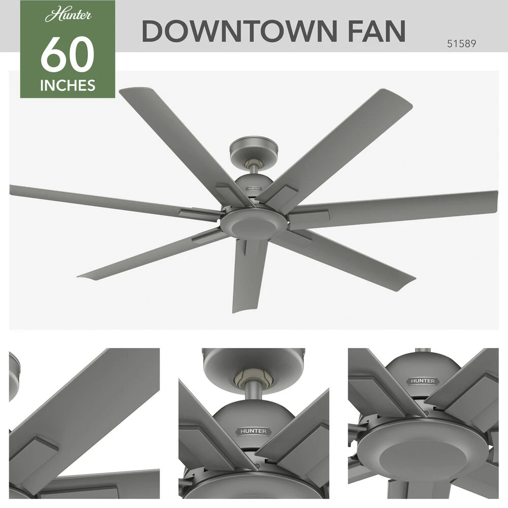 A must for your patio. The 60-inch Downtown ceiling fan keeps the air moving in both your indoor and outdoor spaces. This modern and industrial fan brings a clean design to large spaces. Featuring our exclusive Surespeed® technology, the Downtown Ceiling fan keeps your porches and pergolas stylish and cool.