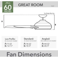 - GREAT ROOM FAN: Ideal size for great rooms, open concept spaces, and lofts.STANDARD PROFILE MOUNTING: 6 inch and 3 inch downrods included.