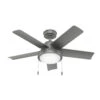 Era 44-inch indoor/outdoor LED dimmable hugger ceiling fan in matte white finish with matte white blades, light kit, and handheld remote control included