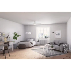 The simple design and clean lines of the Gilmour outdoor ceiling fan complement your casual, modern covered porches and patios. The Matte White finish adds a bright, clean look while the Flat Matte Black finish adds a bold one. This large ceiling fan fits close to the ceiling to provide optimal performance in rooms with low ceilings without sacrificing style or head room.