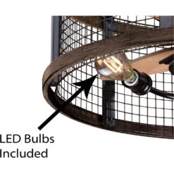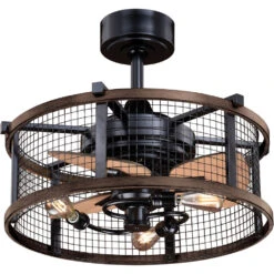 This drum style fan called Humboldt offers 360 degrees of loft inspired beauty and comfort. Oil rubbed bronze finish with burnished teak wood details and blades handsomely accent the metal mesh cage. This beautiful yet functional design is the perfect addition whether your style is edgy urban loft or a laid-back modern country. This fan is compatible with sloped ceilings and includes a 6 inch down rod (longer down rods sold separately). Remote control included for added convenience.
