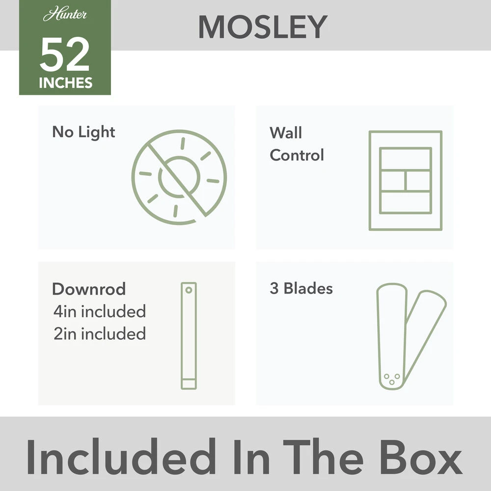 Add modern flair to your home. The 52-inch Mosely ceiling fan’s soft, curved blades achieve an unforgettable look. Fashion this modern fan in both your indoor and outdoor spaces – whether they’re modern or industrial. Mosely’s style is one-of-a-kind and so is its performance. Equipped with our Surespeed® technology, this fan keeps you cool.