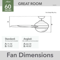 - GREAT ROOM FAN: Ideal size for great rooms, open concept spaces, and lofts.STANDARD PROFILE MOUNTING: 3 inch and 6 inch downrods included.