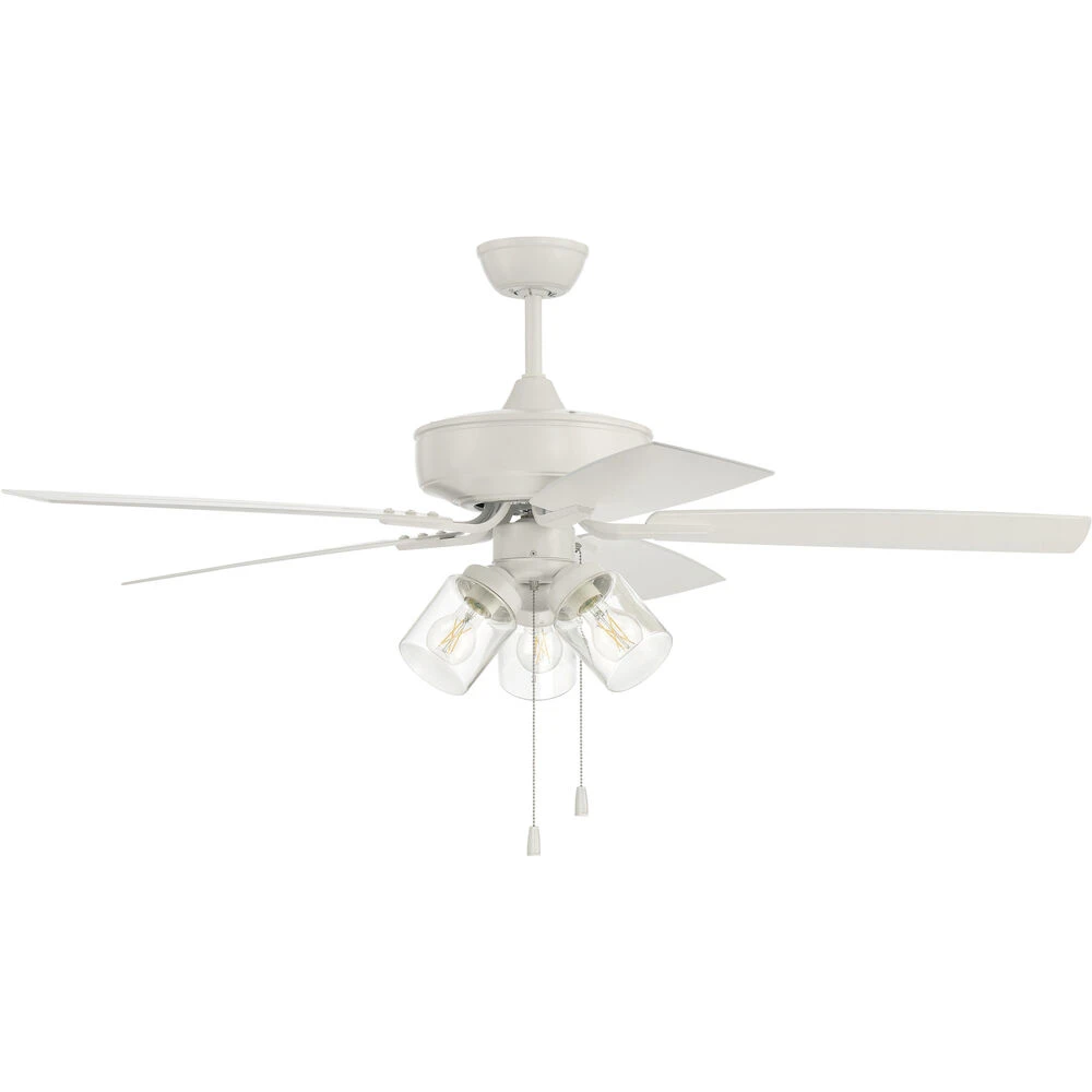 52″ OutdoorPro Plus Fan with 3 Light Kit with Clear Glass and Blades in White