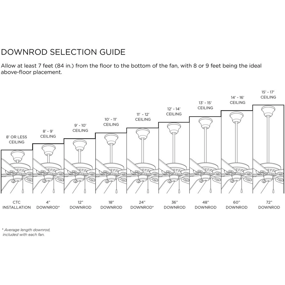 54 inch five-blade Patio Fan with Toasted Oak blades and an Antique Bronze finish. The AirPro Indoor/Outdoor ceiling fan offers great performance and value with a powerful, 3-speed motor that can be reversed to provide year-round comfort. Includes innovative canopy system that can be installed on vaulted ceilings up to 12:12 pitch, additionally, the fan can be installed with no downrod to accommodate lower ceilings.