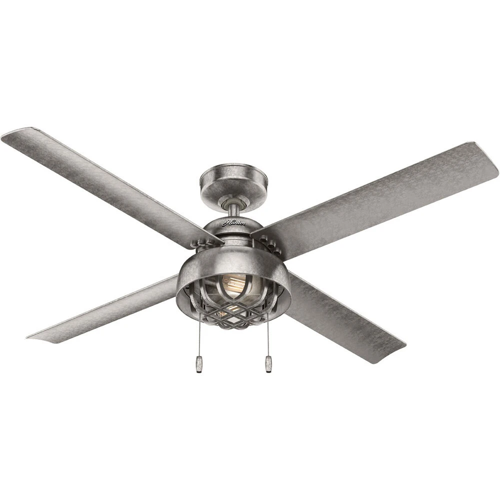 The unique exposed caged design with Edison LED light bulbs on the Spring Mill outdoor ceiling fan adds the finishing touch to your modern industrial style rooms. This damp-rated ceiling fan is perfect for outdoor and indoor spaces exposed to moisture and humidity including covered patios and garages. The included ceiling fan pull chains make it easy to operate the fan and light functions.